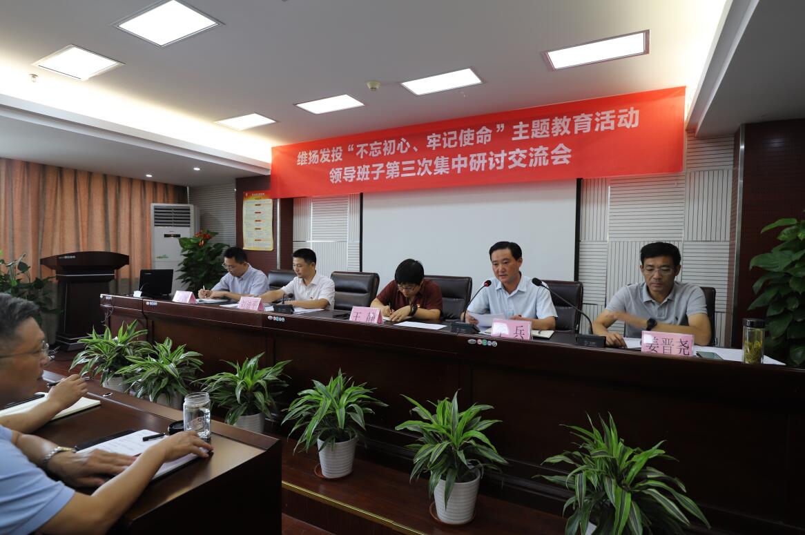 為貫徹落實(shí)區(qū)委《關(guān)于開(kāi)展“不忘初心、牢記使命”主題教育的實(shí)施方案》總體要求,根據(jù)計(jì)劃安排,2019年9月27日上午,在公司大會(huì)議室,召開(kāi)維揚(yáng)發(fā)投“不忘初心、牢記使命”主題教育活動(dòng)領(lǐng)導(dǎo)班子第三次集中研討交流會(huì),公司董事長(zhǎng)李兵,副董事長(zhǎng)、總經(jīng)理劉迪平,副總經(jīng)理姜晉堯以及區(qū)委第八巡回指導(dǎo)組王靜和宋冰兩位同志參加了本次集中學(xué)習(xí)研討。 本次集中研討的主題是“錘煉黨性修養(yǎng)、堅(jiān)定理想信念”。會(huì)中,公司領(lǐng)導(dǎo)班子成員分別圍繞研討主題作了交流發(fā)言。 公司領(lǐng)導(dǎo)班子成員的研討交流,主題鮮明、思想深刻、重點(diǎn)突出。董事長(zhǎng)李兵特別強(qiáng)調(diào),與會(huì)人員要學(xué)有所思、學(xué)有所悟、學(xué)有所得,以參學(xué)本次研討會(huì)議為契機(jī),扎實(shí)開(kāi)展“不忘初心、牢記使命”主題教育活動(dòng),充分學(xué)習(xí)領(lǐng)會(huì)習(xí)近平新時(shí)代中國(guó)特色社會(huì)主義思想。